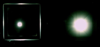 写真4に市販の有機ELDに60Wの白熱電球から光を照射してCCDカメラで撮像した様子を示す。いうまでもなくその差は歴然で、ナノピラーを設けたパネルはきわめてクリアに見える。つまり、ナノピラーを設ければ発光輝度がアップし外光反射も低減できるわけで、この結果、コントラストも大幅に改善することができる。 参考文献