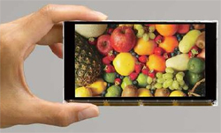 凸版印刷とカシオ計算機の合弁会社「オルタステクノロジー」は、フルHD(1920×1080画素)対応の4.8型TFT-LCDを開発した。 高精細・高開口率のHASTR技術(Hyper Amorphous Silicon TFT)をベースに微細加工技術、液晶配向技術、パネル駆動技術を進化させ、4.8型という小型サイズでフルHD表示を実現した。視野角は上下左右160度、色再現範囲はNTSC比72%で、1677万色が表示できる。 |