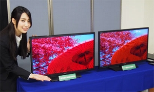 シャープは、LCDの色再現性能を飛躍的に向上させる高色再現LEDを開発した。 開発したバックライト用白色LEDは、従来の黄色蛍光体を赤色蛍光体と緑色蛍光体に変更。この結果、赤色と緑色の発色性能を飛躍的に高め、次世代8Kテレビの色域規格であるBT.2020に対し80%以上のカバー率を実現した。今後、BT.2020規格比100%の実現を目指す。 |