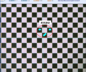 レーザーのエネルギー密度などのプロセス条件を設定した後、まずPCモニター上でリペア・レーザーエッチング箇所を指定します。この際、マウス操作によって自在な形状が簡単に作図できます。つまり、円状、ライン状といったテンプレートを組み合わせればさまざまな形状が可能になります。形状指定後、リペアを行います。リペア後はもちろん即座にモニター上で結果を確認することができます。また、リペアした箇所の寸法も測長できます。