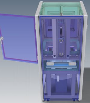 ELP04 PILOTは独自のAIシステム「NeuralJet」を搭載したIJ装置で、位置ずれやノズルの個体差、ヘッドの組立誤差、ノズル状態の変動などの誤差要因をモデル化してリアルタイムでキャリブレーションすることにより、インクの安定吐出と高い着弾精度が得られるのが特徴。実際、繰り返し着弾精度は1μm以下を達成。これは、幅40μmの溝に対し液滴径20μmで印刷描画しても100%溝内に着弾できることを意味する。ブースでは、ガラスやシリコンウェハーにIJ印刷したサンプルを展示。ティピカル印刷線幅はL&S=50μm/50μmで、このレゾリューションなら歩留まり100%であることを示した。 ガラス基板向けにAg焼結金属でファインパターンを