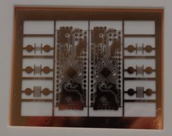 This means that even when printing droplets with a diameter of 20 ƒÊm into grooves 40 ƒÊm wide, 100% of the droplets land within the grooves. At the booth, samples printed by inkjet on glass and silicon wafers were displayed. Typical printed line-and-space resolution was L&S = 50 ƒÊm / 50 ƒÊm, demonstrating a 100% yield at this resolution. Fine Patterns Using Ag Sintered Metal for Glass Substrates