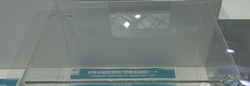 Both materials can be deposited by sputtering using commercially available Pd-Co targets while purging with O2 gas, resulting in c-axis-oriented polycrystalline films with grain sizes of approximately 200 nm. The surface smoothness is also excellent, with an RMS roughness of 0.4 nm. In addition, both visible and near-infrared light transmittance exceed 80%. Photo 4 shows a disclosed small deposition sample; due to its thickness of 30 nm, it appears slightly brownish, but it becomes nearly transparent at thicknesses of several nanometers. A remaining challenge is the high deposition temperature of 700C. At lower temperatures, amorphous or low-crystallinity polycrystalline films are formed. For applications requiring patterning, such as electrodes, the high corrosion resistance necessitates dry etching methods such as reactive ion etching. Display System Appearing on Wood-Grain Walls