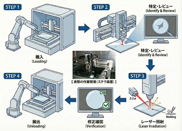 ここでは、実際のリペア作業およびレーザードライエッチング作業をみてみましょう。